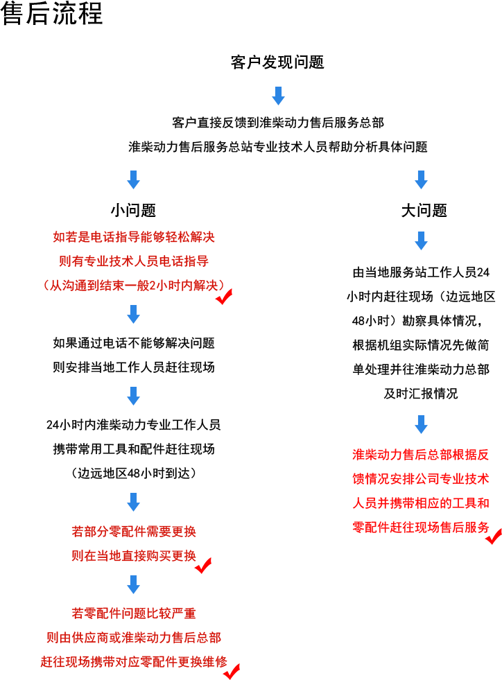 闪电服务,跟踪到底,是淮柴动力售后的准则;绝不推诿,提前预防,是淮柴动力的核心