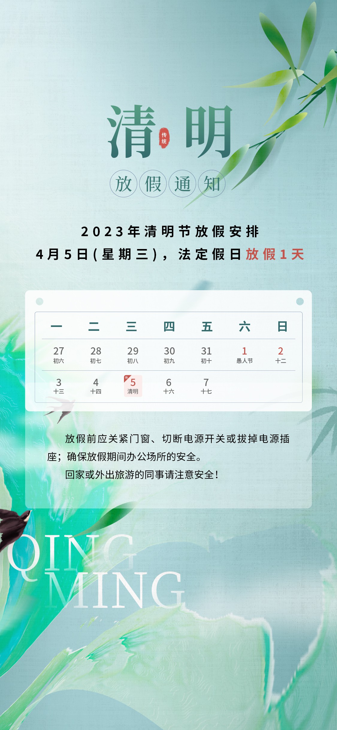 清明放假通知
